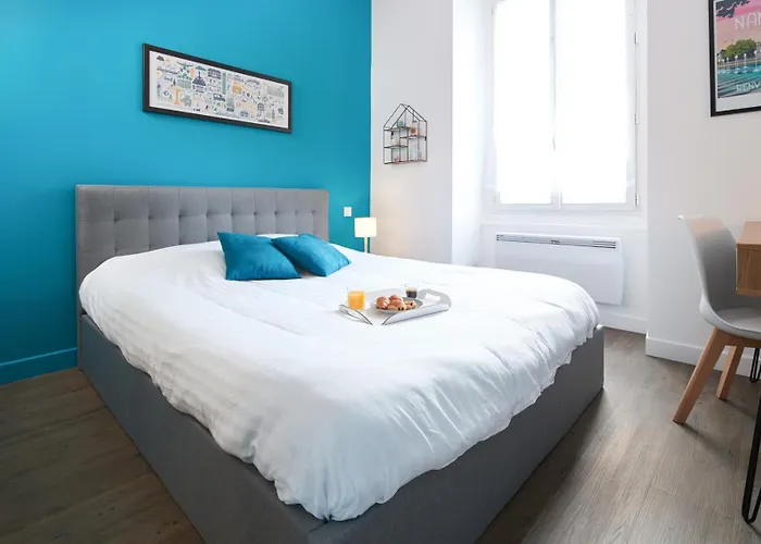 Studio Cosy Blue Au Coeur De Nantes距离南特岛机械有1.2公里的路程,全场有免费无限网络. 住宅设有咖啡/茶设施,小厨房和办公桌的房间.